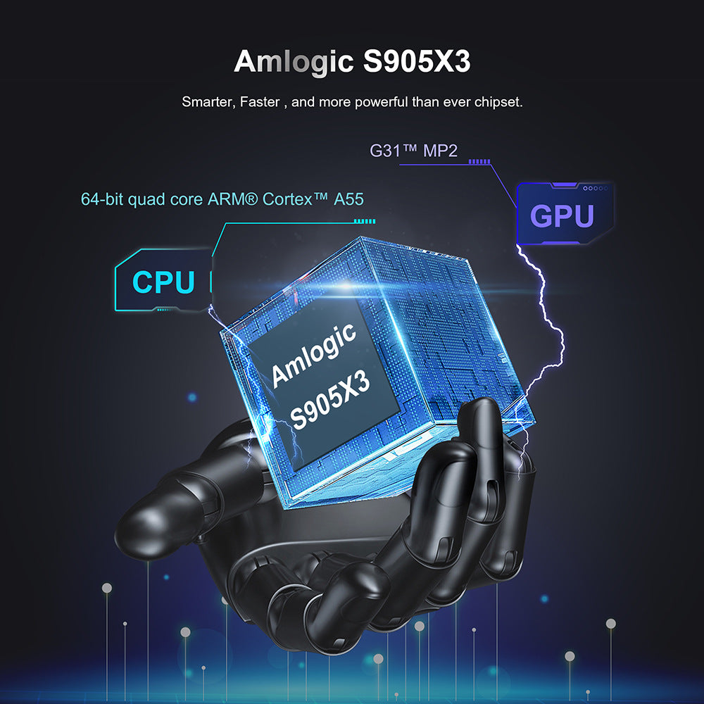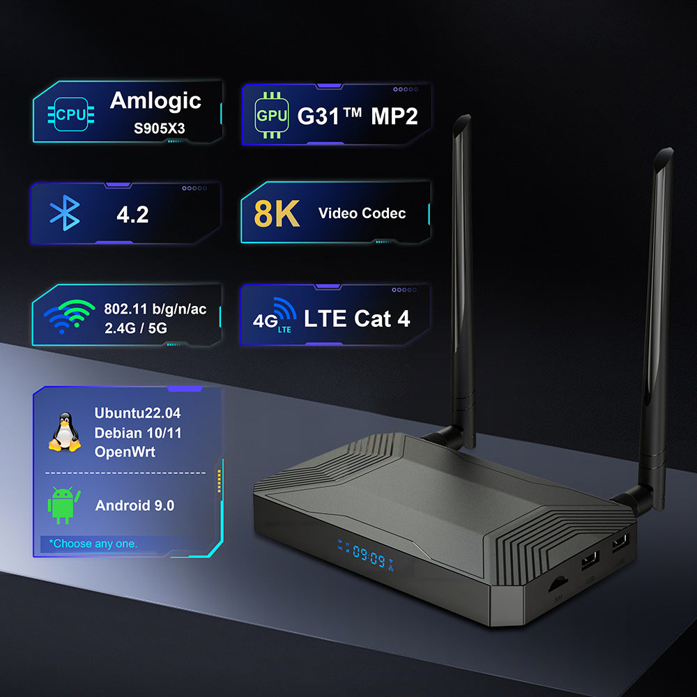 Este decodificador de TV Android con puerto SIM 4G LTE está equipado con un chip Amlogic S905X3 de cuatro núcleos.