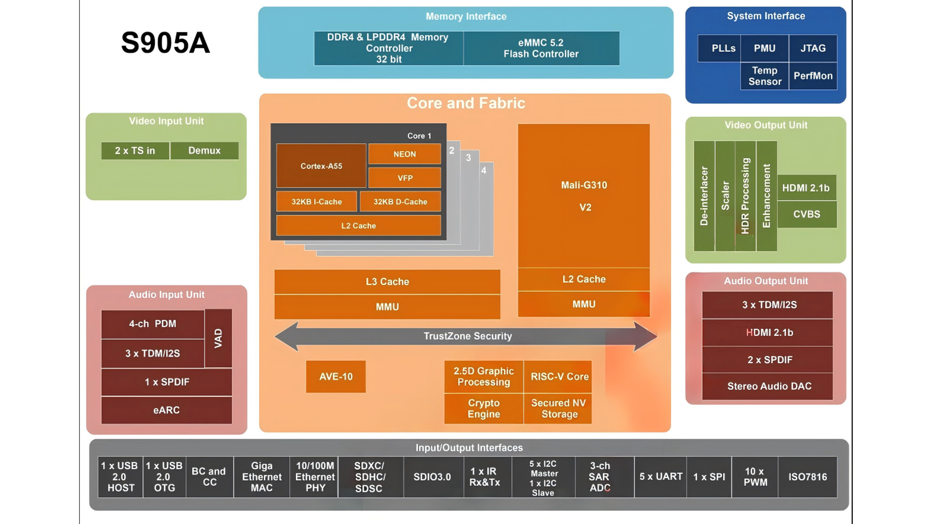 AMlogic S905A 4K AI TV Box SoC Quad-core ARM A55, ARM G310 V2, 6nm process, AV1, H.265, AI-SR